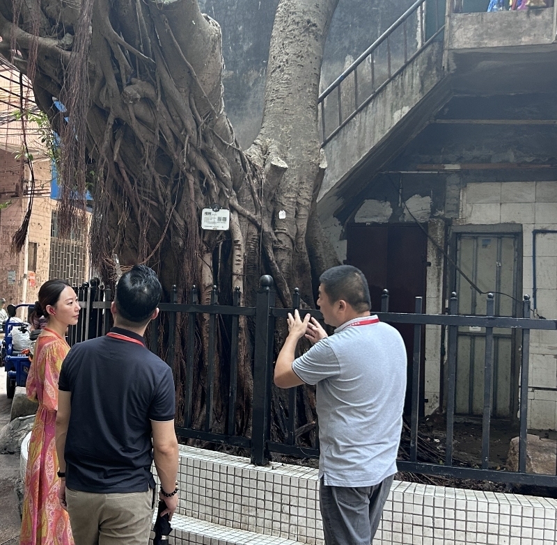 活动中,代表们来到大埔社区梁家祠堂旁,实地察看150余年棠涌古树保护情况。古树名木多分布在社区村落里,点多面广,代表们建议制定完善养护方案,聘请专业人员对古树日常专业养护尤为重要,强化古树保护的法律法规建设,清晰界定相关部门的职责和权限,增强对古树保护工作的监督力度,以期提高古树保护的工作效率和质量。