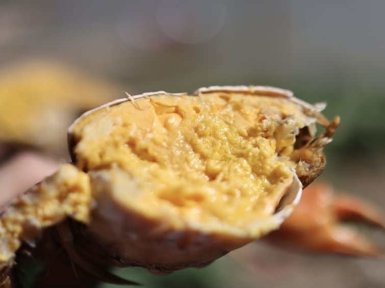 黄油蟹因何形成?传统观点认为,受到阳光暴晒、环境刺激等影响,青蟹体内的蟹膏会逐渐融化成金黄的油脂,渗透至身体每个部位。