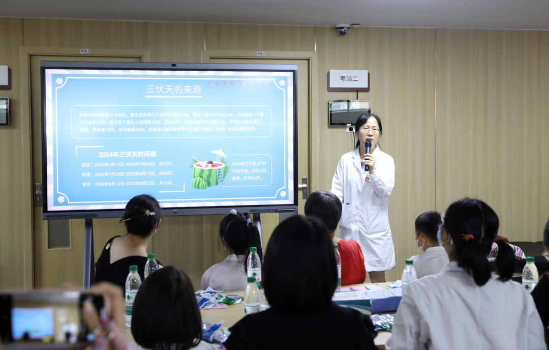 广州市红十字会医院中医科主任中医师吴笛为“小医生”们展开了一场关于“三伏天”的文化与健康之旅。吴笛介绍,“三伏天”不仅是酷暑的代名词,更是遵循天地之道,调和身心的重要时刻。“三伏天”里人体阳气最为旺盛,是“冬病夏治”的好时机,部分人群在期间贴三伏灸,可调整人体的阴阳平衡,预防旧病复发或减轻症状。但并不是说 “三伏贴”可以包治百病,也不是所有人都适宜贴,阴虚火旺、皮肤病、恶性肿瘤、急性咽喉炎、强过敏体质等患者就不宜采用中药贴敷疗法进行治疗。