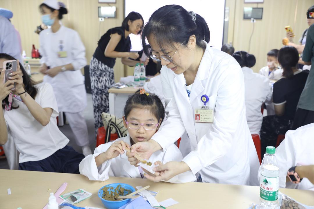 日前,广州市红十字会医院举办建院120周年系列活动之“三伏‘童’行,健康一‘夏’”小医生体验营活动。活动通过中医文化知识讲座、“三伏天”药物制作、常用药物及穴位辨认、中医技能亲子活动等方式,向青少年朋友们宣传、科普中医文化知识,增强文化自信,让青少年朋友在寓教于乐、融学于趣中学习健康知识,从小培养良好的中医文化,赓续中华文脉,提高全民健康意识。活动现场,50名小朋友穿上白大褂,变身小医生们,在中医科医生的带领下进行多方位、沉浸式的职业体验。