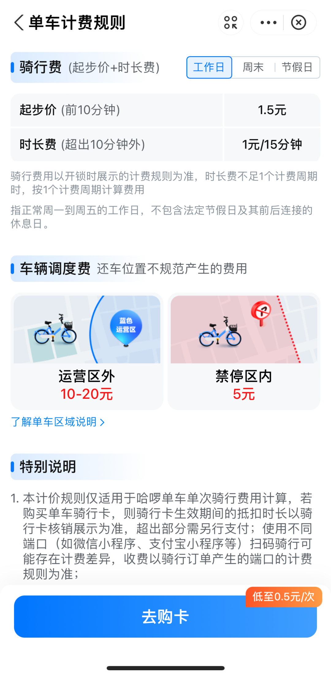 但对于骑行时间在15分钟左右的人而言,这种变化所带来的影响便十分显著。“我骑车到家十几分钟,以前骑哈啰单车在起步价内只要1.5元,现在要2.5元。”梁小姐说,之后骑共享单车可能会根据时间选择价格更优惠的品牌。