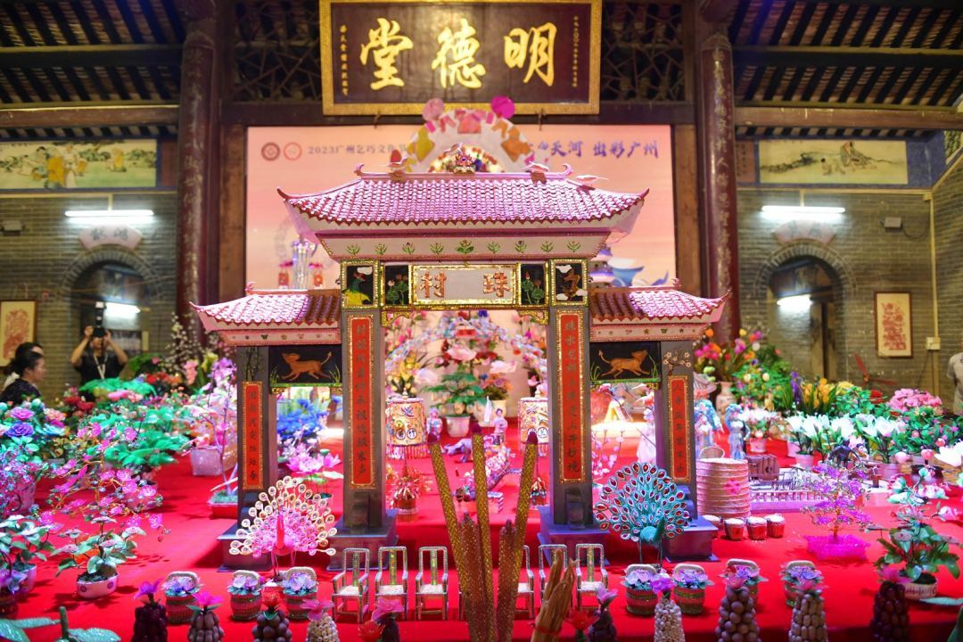 8月4日至10日,在珠村·明德堂、北帝庙、陈氏宗祠等五个展示点,将展示制作传统乞巧供案,设置拜祭仪式,向广大市民展示“巧手巧艺”摆七娘、“焚香虔心”拜七娘、“得巧祈福”送七娘等传统乞巧民俗,体现民间传统风俗和乞巧工艺,供市民、游客观赏。