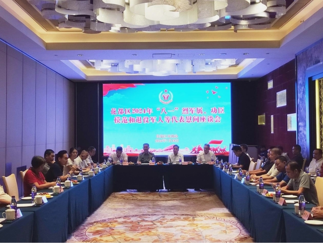 花都区近日召开“八一”烈军属、功臣模范和退役军人等代表慰问座谈会,介绍该区拥军优属工作情况,向广大退役军人和其他优抚对象传递了党和政府的关心关爱,并充分肯定了辖区退役军人、优抚对象为国防建设和社会经济建设所作出的贡献。