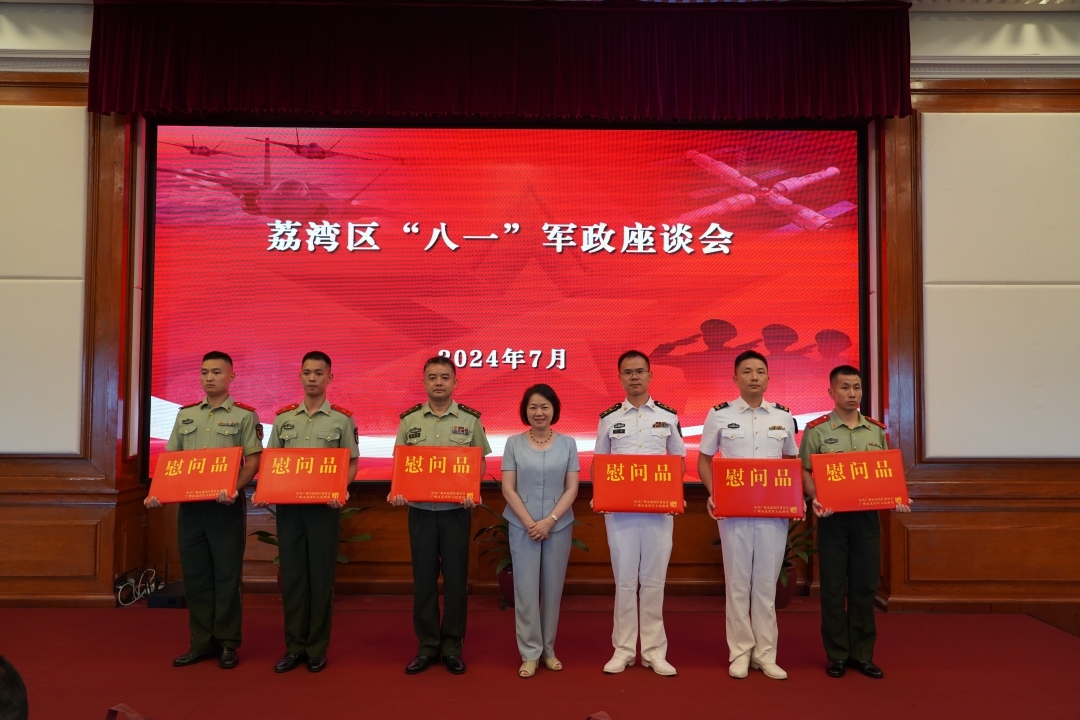 7月25日,南沙区组织开展2024年退役军人和优抚对象代表“八一”慰问座谈活动,与会代表共同庆祝八一建军节。次日,该区拥军慰问团相继来到“双拥水兵港湾”和驻区武警某部开展“八一”走访慰问活动。