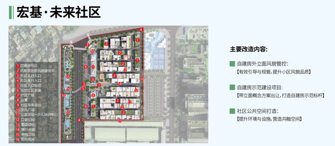 值得关注的是,新式自建房不仅仅是单纯居住的一栋楼,而是把居住区打造成社区,让自建房的环境可以媲美花园小区。容桂宏基小区的重点打造项目包括自建房示范、社区人行入口、社区广场、社区活动+少儿培训中心、慢行步道、中栈公园,打造成顺德未来理想居所,让现代都市也能留住乡愁。