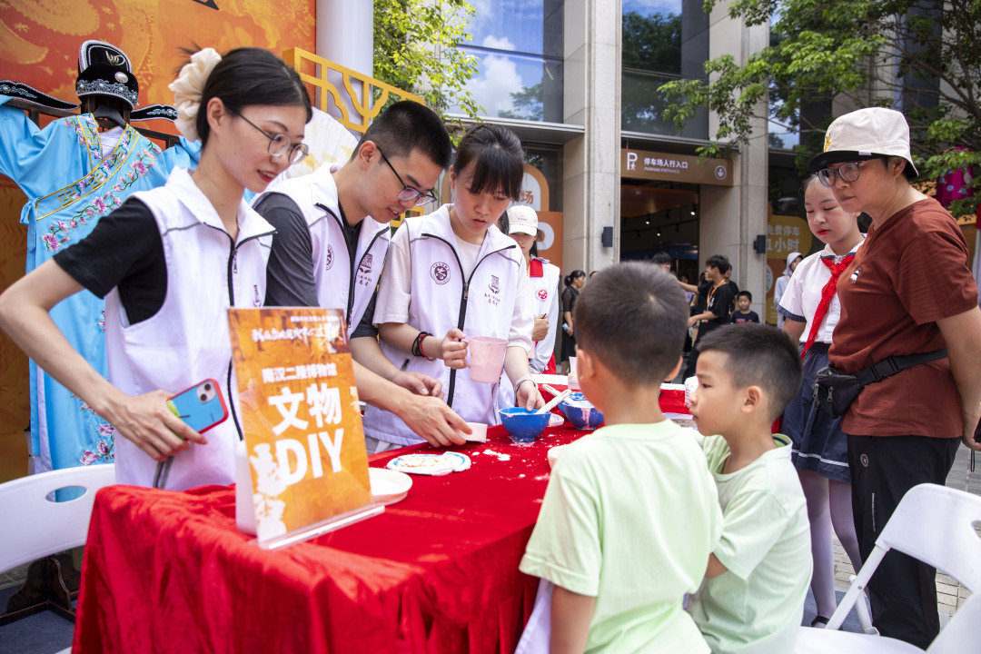 东晋滑石猪、唐代陶生肖牛俑、宋代吉祥文字瓦当……记者发现,平日在博物馆展出的精美文物,市民游客可以在活动现场体验“复刻”。在“非遗项目体验区”,来自南汉二陵博物馆的志愿团队为大家带来“文物DIY”实践体验活动,现场观众在志愿者指导下亲自参与制作,他们在选好的模具中加入调好的石膏,将模型翻模出来,再发挥艺术想象力自由上色,一件件栩栩如生的文物就被复刻出来了。