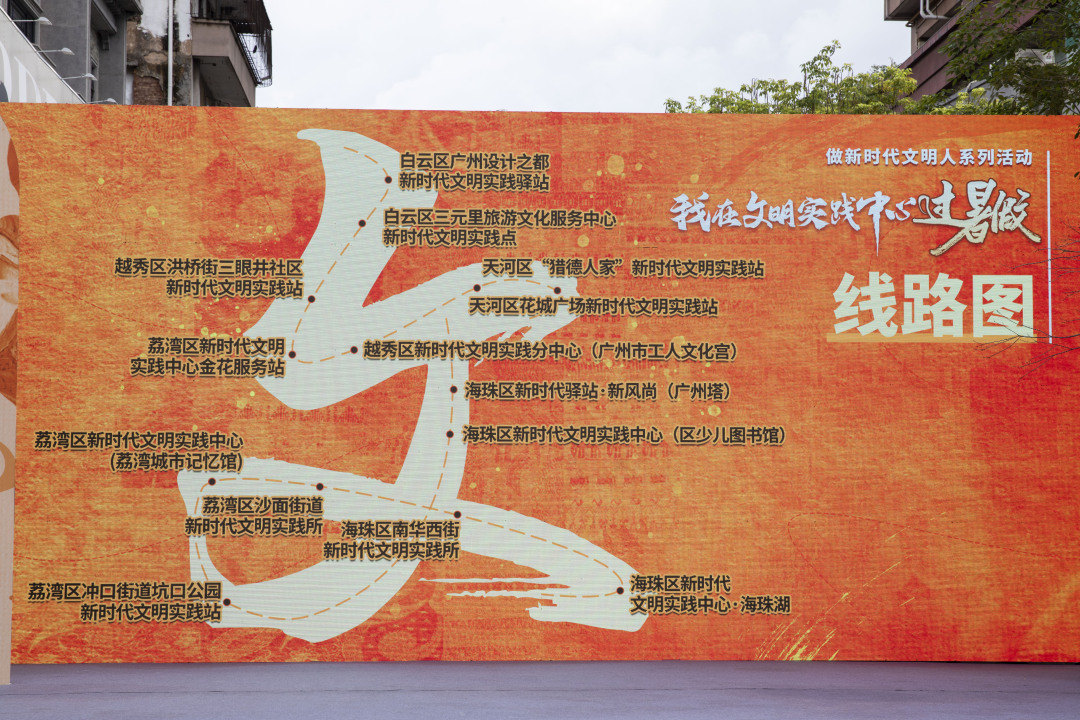 活动期间,广州市精神文明建设办公室充分整合14个新时代文明实践阵地,串珠成链推出4条“暑假好趣处”打卡集章线路。四条线路别出心裁地组成“文”字,线路上不乏文旅地标、特色景点以及新时代文明实践阵地。