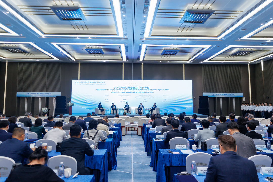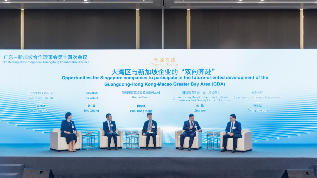 粤新合作理事会上,与会政企代表围绕“粤新高质量发展”和“大湾区与新加坡企业的‘双向奔赴’”介绍重点合作成果,共同为深化两地在大湾区的合作建言献策。