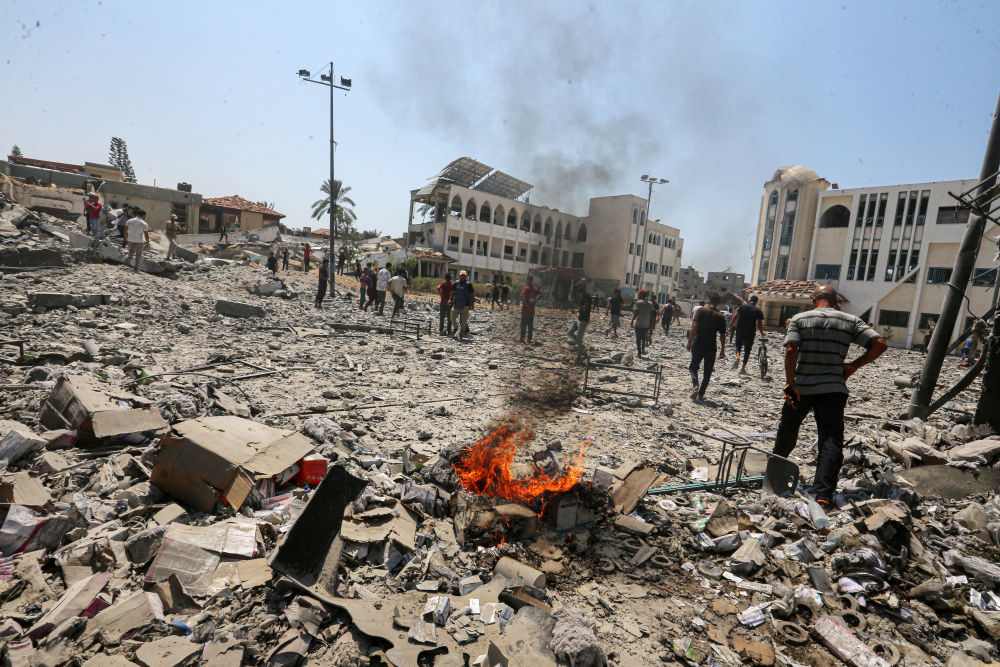 7月27日,在加沙地带中部城市代尔拜拉赫,人们聚集在以军袭击现场附近。新华社发(里泽克·阿卜杜勒贾瓦德摄)