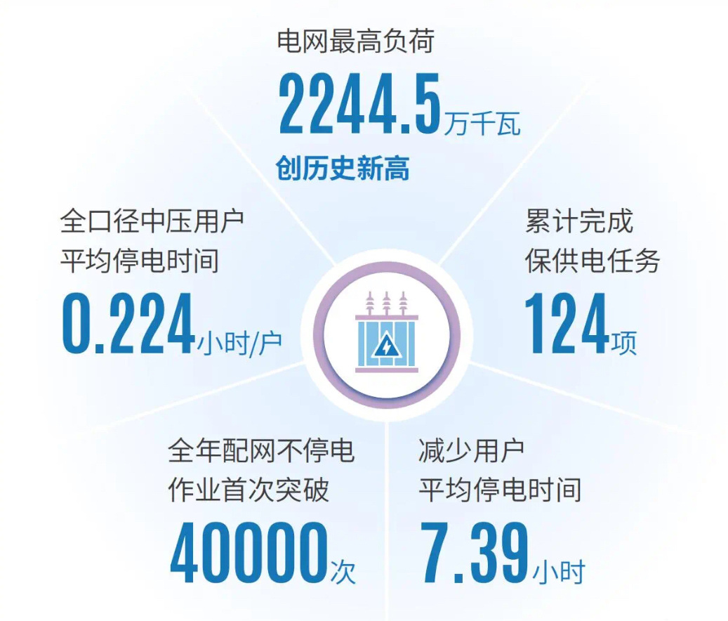 2023年社会责任实践报告是广州供电局对外发布的第13份报告。2023年,广州供电局加快创建全国领先标杆供电局,以一流能源电力服务支撑保障广州高质量发展,每度电支撑广州GDP产出27.63元,实现全口径中压用户平均停电时间0.224小时/户,优于纽约、伦敦,比肩巴黎。供电服务满意度在广东省、广州市公共服务调查中实现十五连冠和二十三连冠。