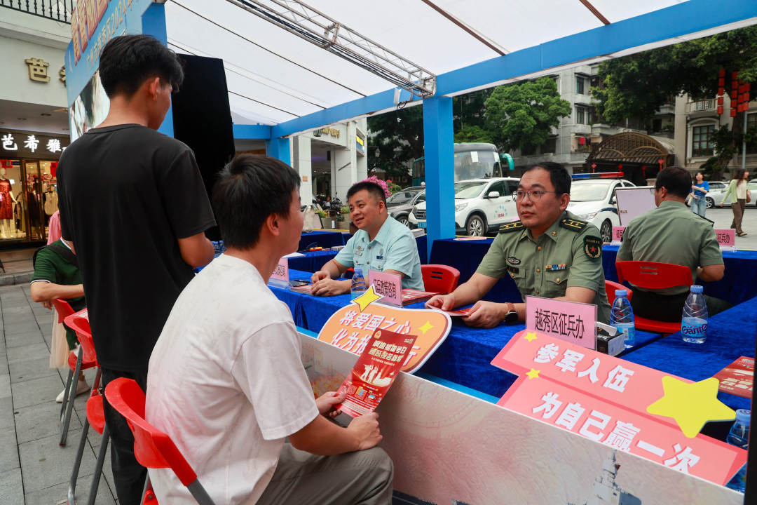 “北京路是广州最古老的城市中轴线,历经2200多年。该步行街位于广东省广州市文化和商贸核心区域,人流量密集,到访客群以年轻人为主,日均人流量约40万人次。”越秀区征兵办工作人员介绍,近两年,采取“征兵宣传+国防教育”进北京路的方法,精准宣传见成效,不仅让市民群众在潜移默化中厚植国防情怀、强化国防意识,适龄青年应征报名率也在大幅度提高。