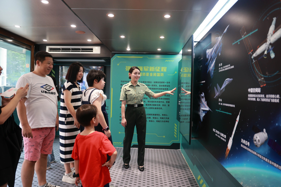 为庆祝八一建军节,进一步激发广大适龄青年参军入伍、投身国防的热情。7月31日,广州市越秀区人武部联合广州北京路文化核心区管理委员会和越秀区新时代文明实践中心,利用暑期旅游旺季,在北京路举行“青春献国防,梦想启航时”征兵宣传暨国防教育活动。活动以“新”“潮”“智”“趣”为理念,设置了征兵政策咨询区、国防装备体验区、视频展板观摩区等多个区域。智能化的互动体验、酷炫的军事装备、丰富的国防科技知识、有趣的知识挑战……闪现在广州市北京路步行街的“这就是国防”主题大篷车、征兵宣传咨询站吸引了广大市民群众驻足观看,让人挪不开眼,成为北京路一道靓丽的风景线。