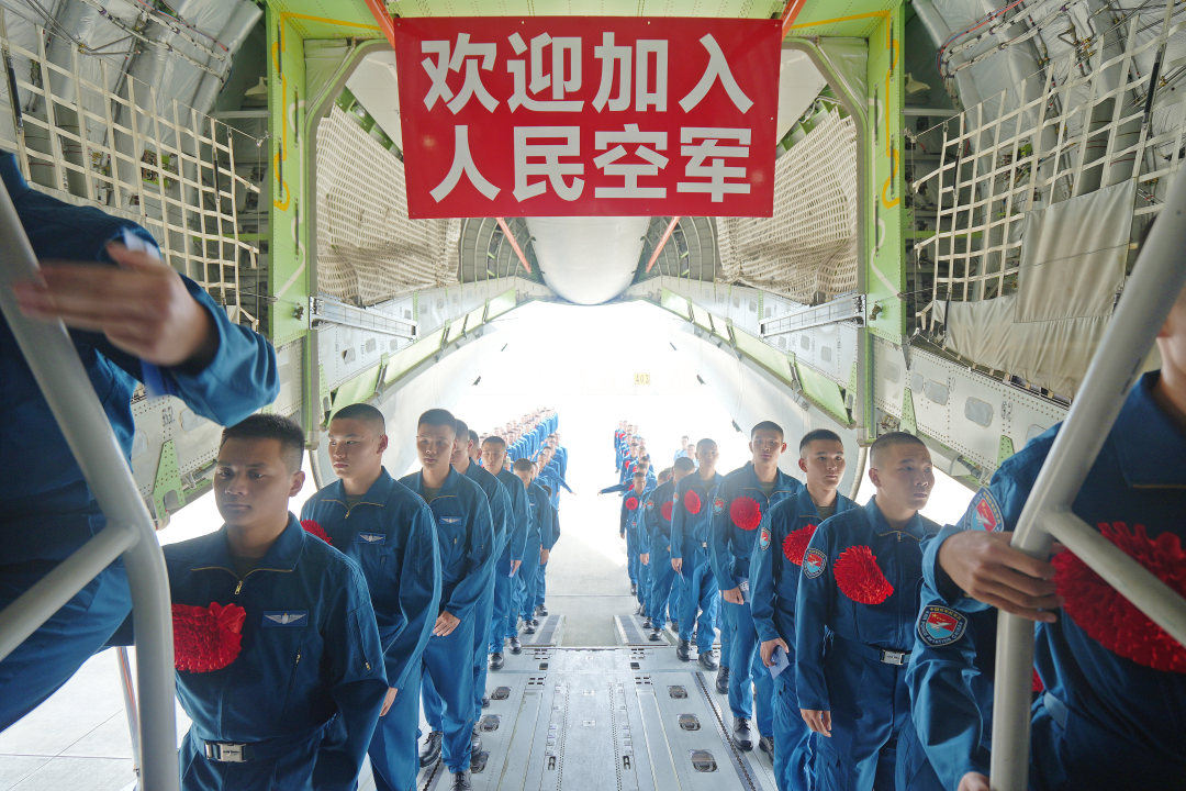 “亲爱的新战友们,我是空军运-20机长,欢迎大家加入人民空军!”伴随着运-20机组广播,“鲲鹏”扶摇直上。据悉,为充分激发新录取飞行学员荣誉感与自豪感,空军使用多架运-20,从沈阳、石家庄、济南、南京、长沙和成都6个登机点,集中运送新录取飞行学员前往“空军飞行员的摇篮”——空军航空大学报到。