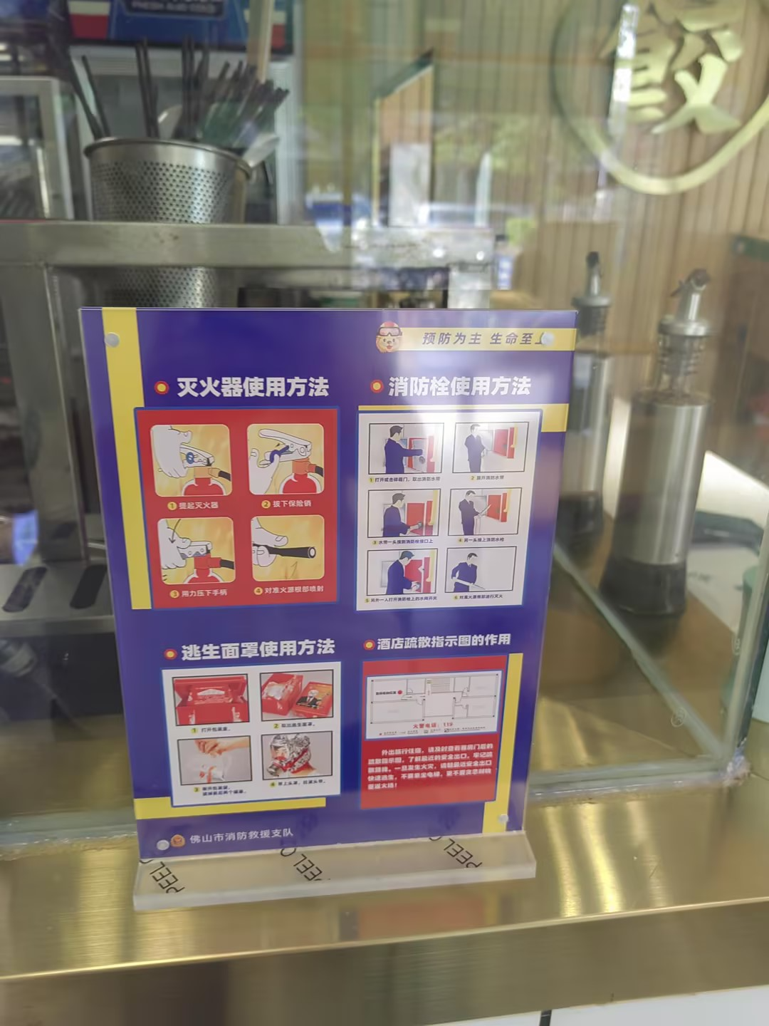 为进一步拓展消防宣传阵地,提升消防宣传实效,把消防知识融入生活,近日,佛山消防携手“袁记云饺”一起开展消防公益宣传,通过在店铺餐桌上摆放消防餐牌,将日常消防安全知识采用简明扼要的语句阐述,让群众收获一顿丰盛的安全“大餐”。