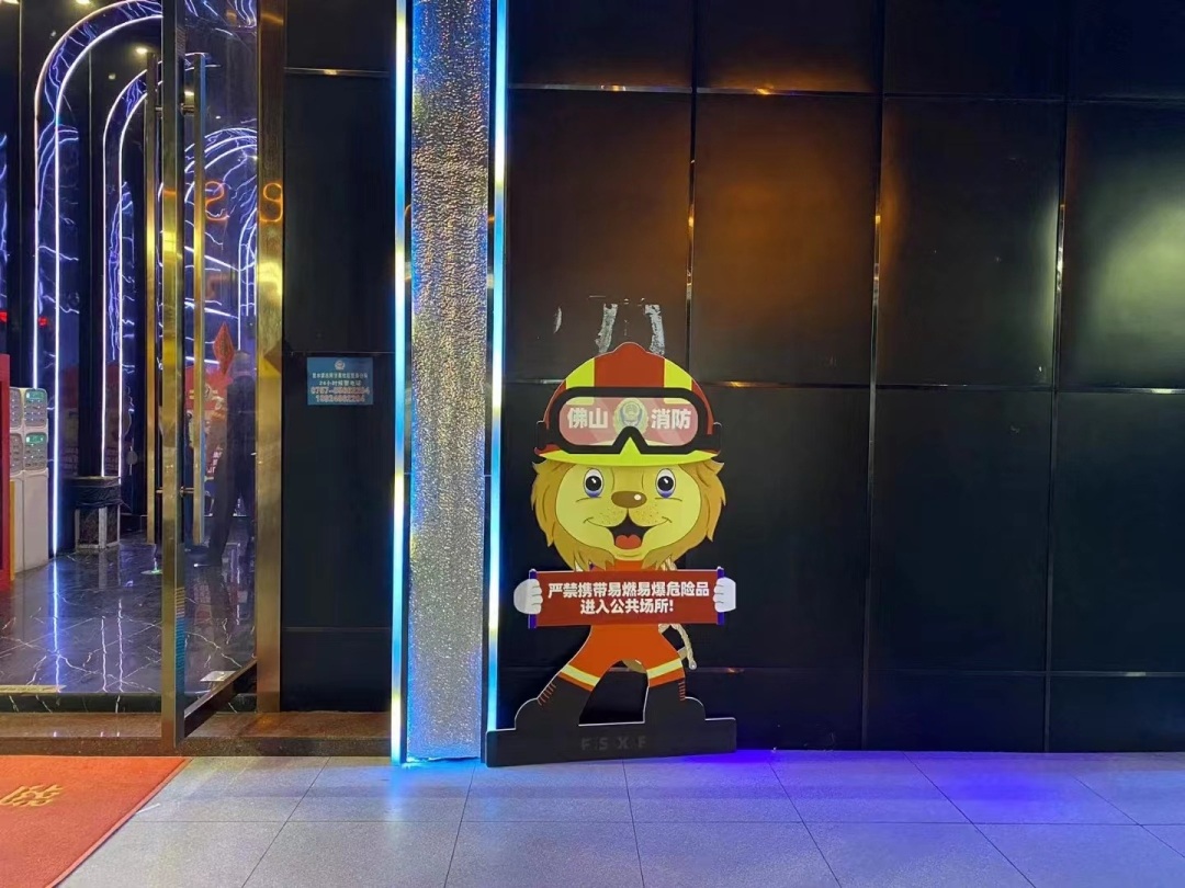 结合佛山消防专属的消防狮IP形象,打造实体化、亲民化消防宣传,在电影院、商场、景区等公共场所的显眼位置放置人形立牌、打卡装置、安全提示牌等供市民打卡拍照,以趣味形式吸引市民了解消防、关注消防。