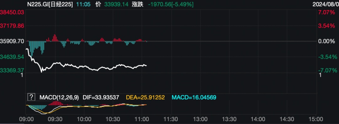 8月5日,日本东京股市继续大幅下挫。日经225指数今天(8月5日)盘中较上一交易日收盘已下跌超过4200点,跌幅超11%,创历史最大跌幅。日经225指数今天开盘以来已两度触发熔断机制。