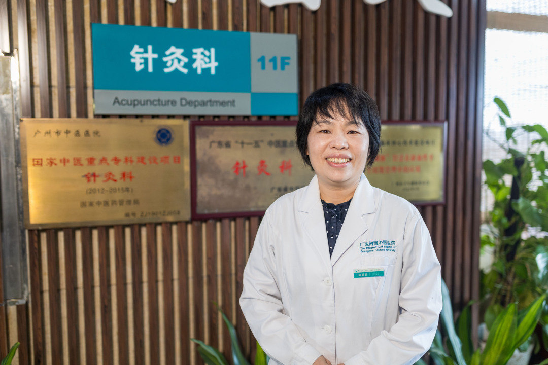 广州医科大学附属中医医院珠玑院区针灸科病区内,设置了一面供病人们留言的墙壁。一些在此接受治疗后肢体功能有所恢复的中风患者,用歪歪扭扭的字迹留下感谢。其中一张便利贴写着:“一身白衣,一片丹心,一抹微笑,带来安心”,正是该科科主任陈楚云给人留下的印象。