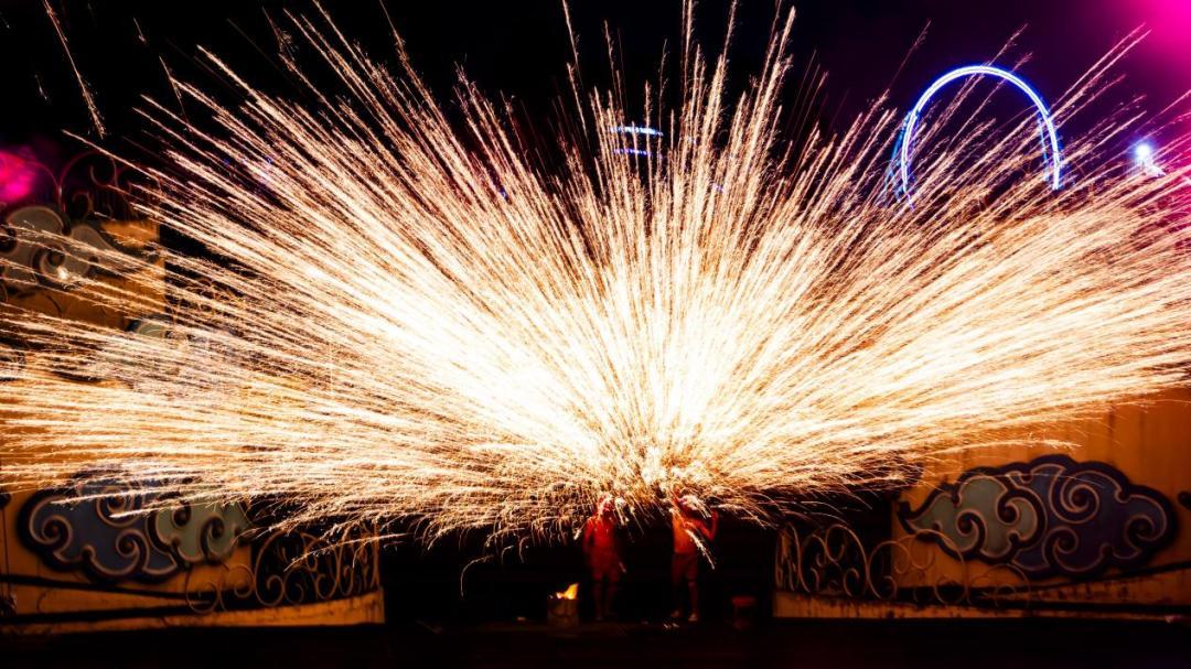 在广州融创文旅城,暑假《丝路情缘》光影花火秀、啤酒电音派对、夏日缤纷大巡游等精彩活动,为广大游客打造了暑期夜游的无限惊喜。“没想到在广州也可以看到这样精彩的表演,近距离欣赏到打铁花,还有烟花秀,感觉很震撼!” 来自香港的陈先生赞叹道。数据显示,7月13日-7月25日期间,广州融创文旅城夜间剧场上座率同比上升超过50%。作为广州市首批发布的都会级羊城夜市先行区之一,广州融创文旅城近两年来陆续打造了主题夜游特色产品,不断升级夜间游玩价值。景区方面表示,这场演出的主要目标客群是广州本地及粤港澳大湾区游客,打造了“足不出粤,赏非遗大戏”的主题活动,在40分钟的表演中还融入了鱼灯舞、舞龙、佤族特技表演等多种民俗元素,而且创新出“铁花烟火”相融合的表演内容,让绚烂的烟花点亮羊城夏日的夜空。如今,这个节目已是游客必到的打卡地,连续多周演出场场满座。借助这一热度,“广州打铁花”话题也进入社交平台全国热榜,成为这个暑假来广州不能错过的夜间表演之一。