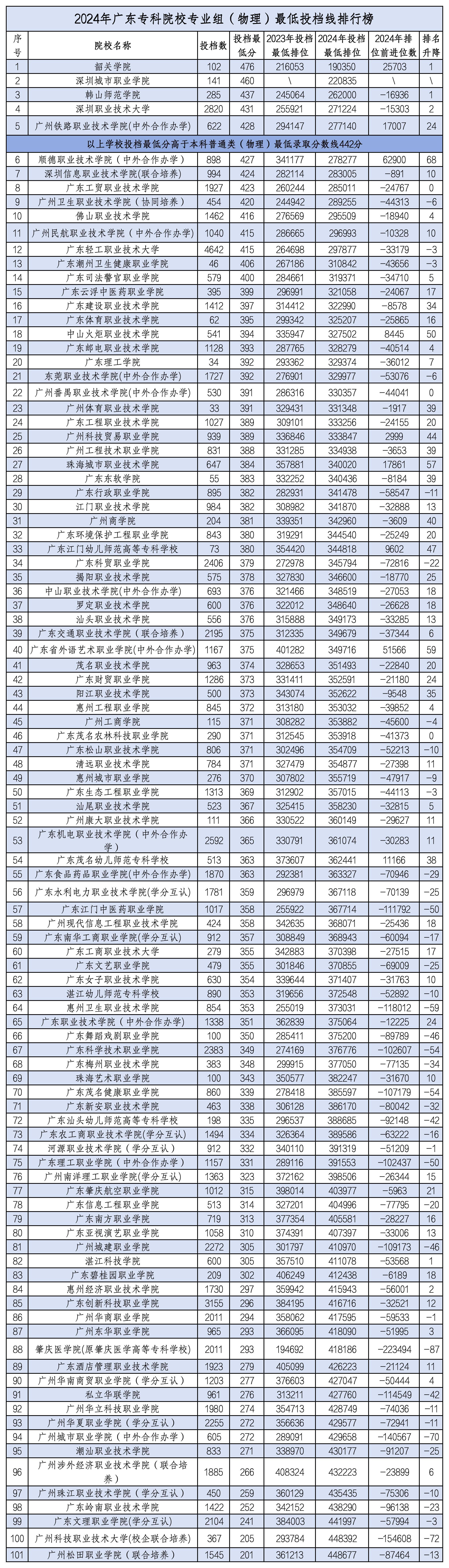 与去年相比,2024年广东专科院校专业组最低投档线的排行榜上,有较大变化。