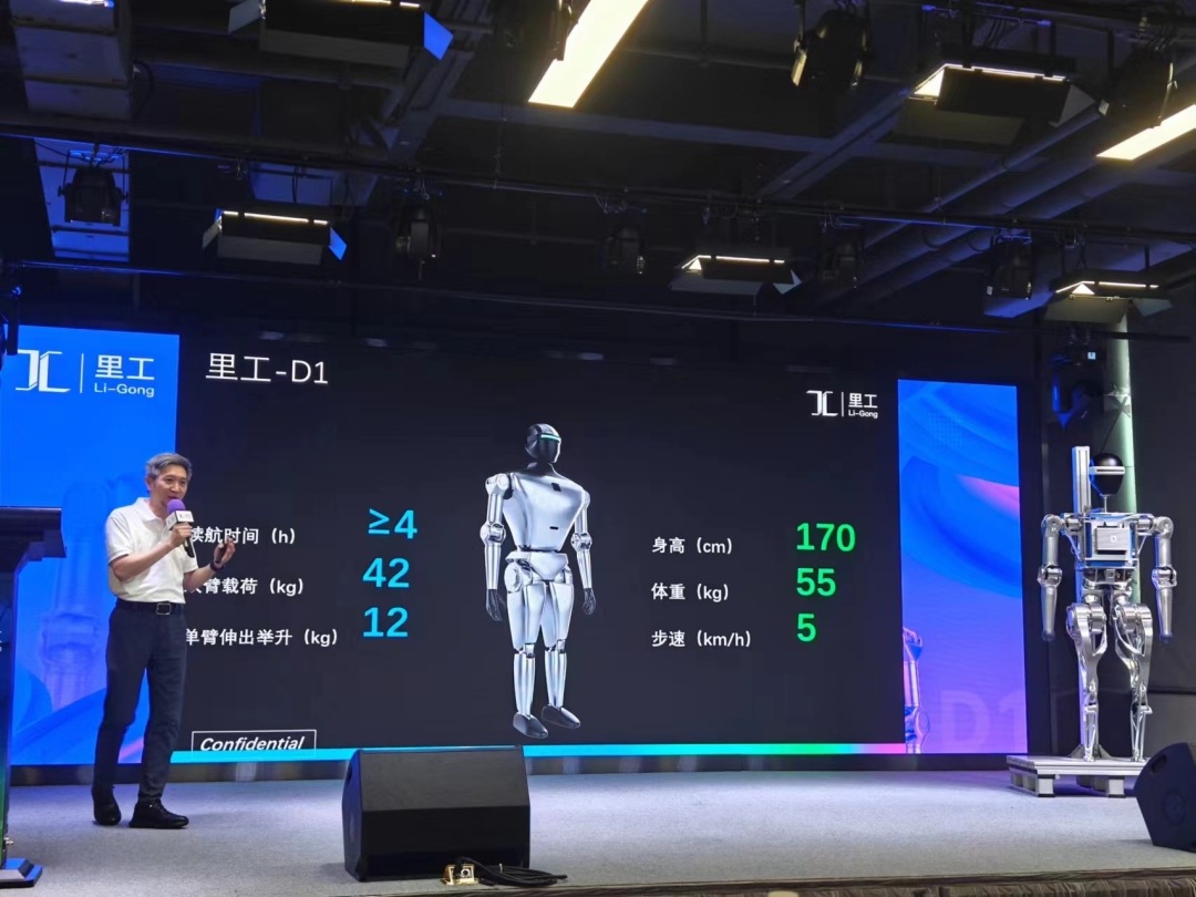 据介绍,“里工D1”采用了先进的仿生设计理念,模拟人类运动的灵活性和协调性。全身拥有多个自由度,结合强大的关节扭矩和±0.03mm重复定位精度,使其在执行复杂任务时表现出色。同时搭载里工最新的人工智能算法和强大的实时计算平台,“里工D1”具备高度的智能感知和自主决策能力。它能够实时分析环境信息,智能规划行动路径,并在不断学习和优化中提高任务执行的效率和准确性。