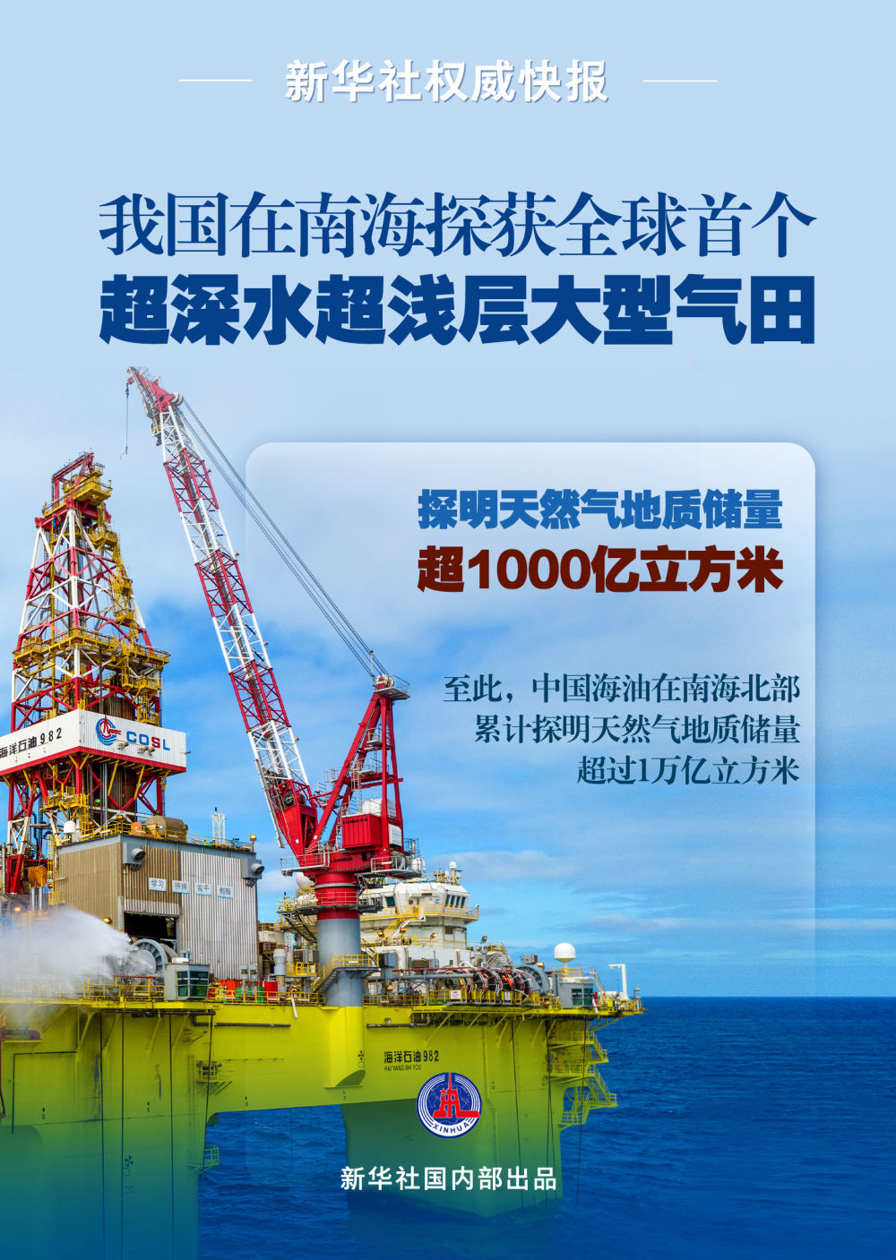 中国海油8月7日宣布,在海南东南海域发现的陵水36-1气田新增探明储量顺利通过国家有关部门评审备案,探明天然气地质储量超1000亿立方米,为全球首个超深水超浅层大型气田。
