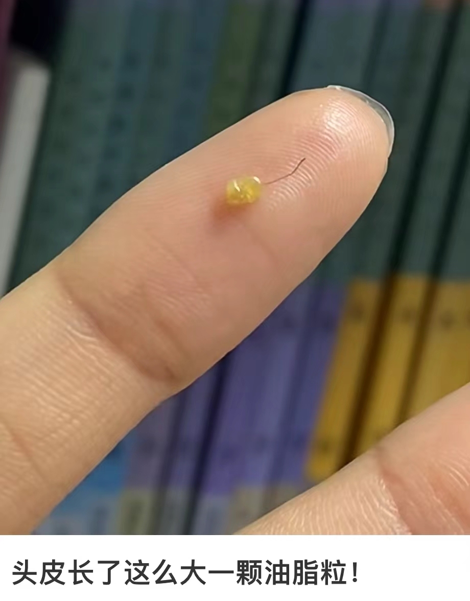 一般来说,从头皮上抠下来的形状像芝麻的“小颗粒”,大多就来源于油脂的分泌。
