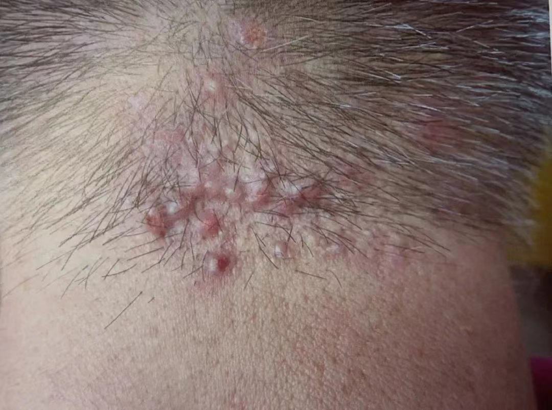 毛囊炎常见于平时不注意头皮卫生,或是总是抓挠头皮导致破溃引起炎症的情况。
