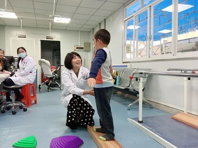 社卫医生指导儿童康复训练(资料图)。