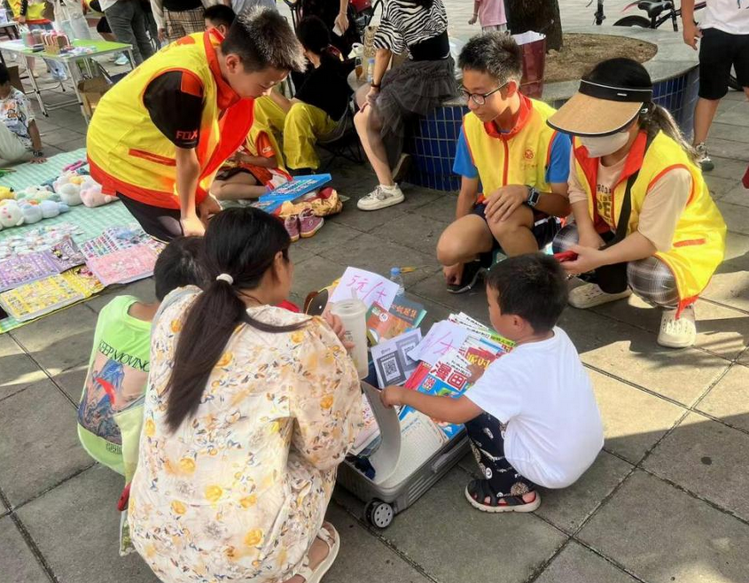 志愿者和爱心摊主在慈善集市现场义卖(资料图)。