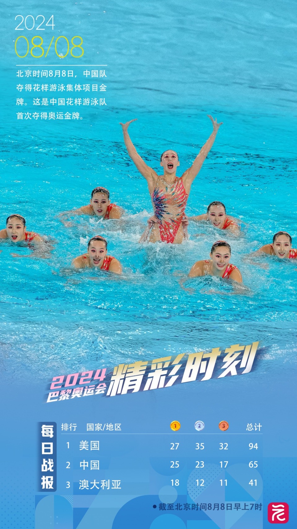 奥运时刻|中国花游首夺奥运金牌;跳水梦之队男子3米板争金