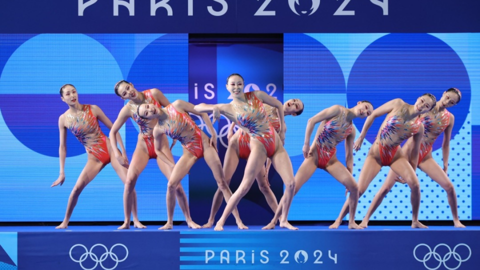 当地时间8月7日,巴黎奥运会花样游泳项目首金在巴黎水上运动中心诞生。在结束此前的集体技术自选、集体自由自选和当晚的集体技巧自选比拼后,8名选手组成的中国队以总分第一的成绩夺得集体项目金牌。这是中国花样游泳队参赛史上首夺奥运金牌。