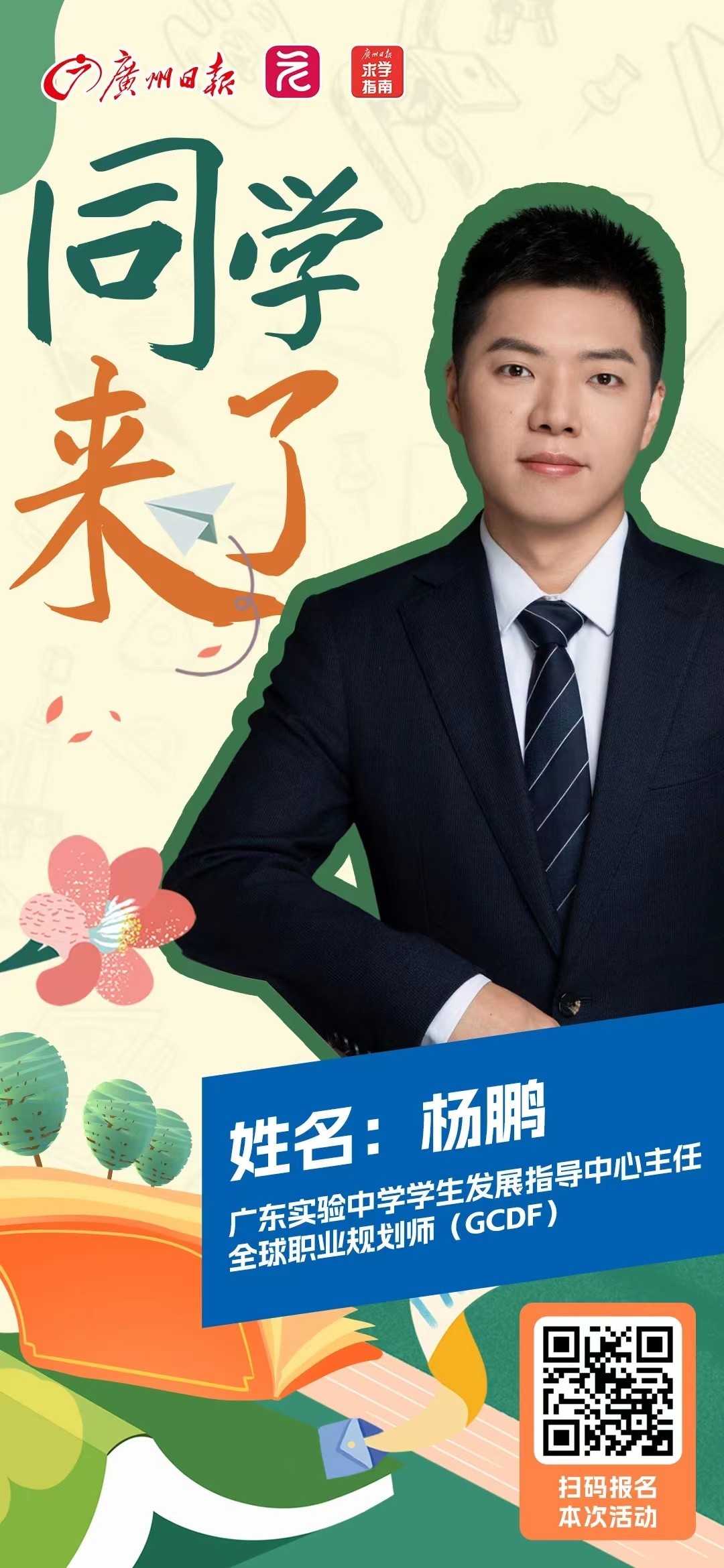 不仅如此,今年的活动还邀请到广东实验中学学生发展指导中心主任、全球职业规划师(GCDF)杨鹏,为学生生涯规划发展指点迷津。