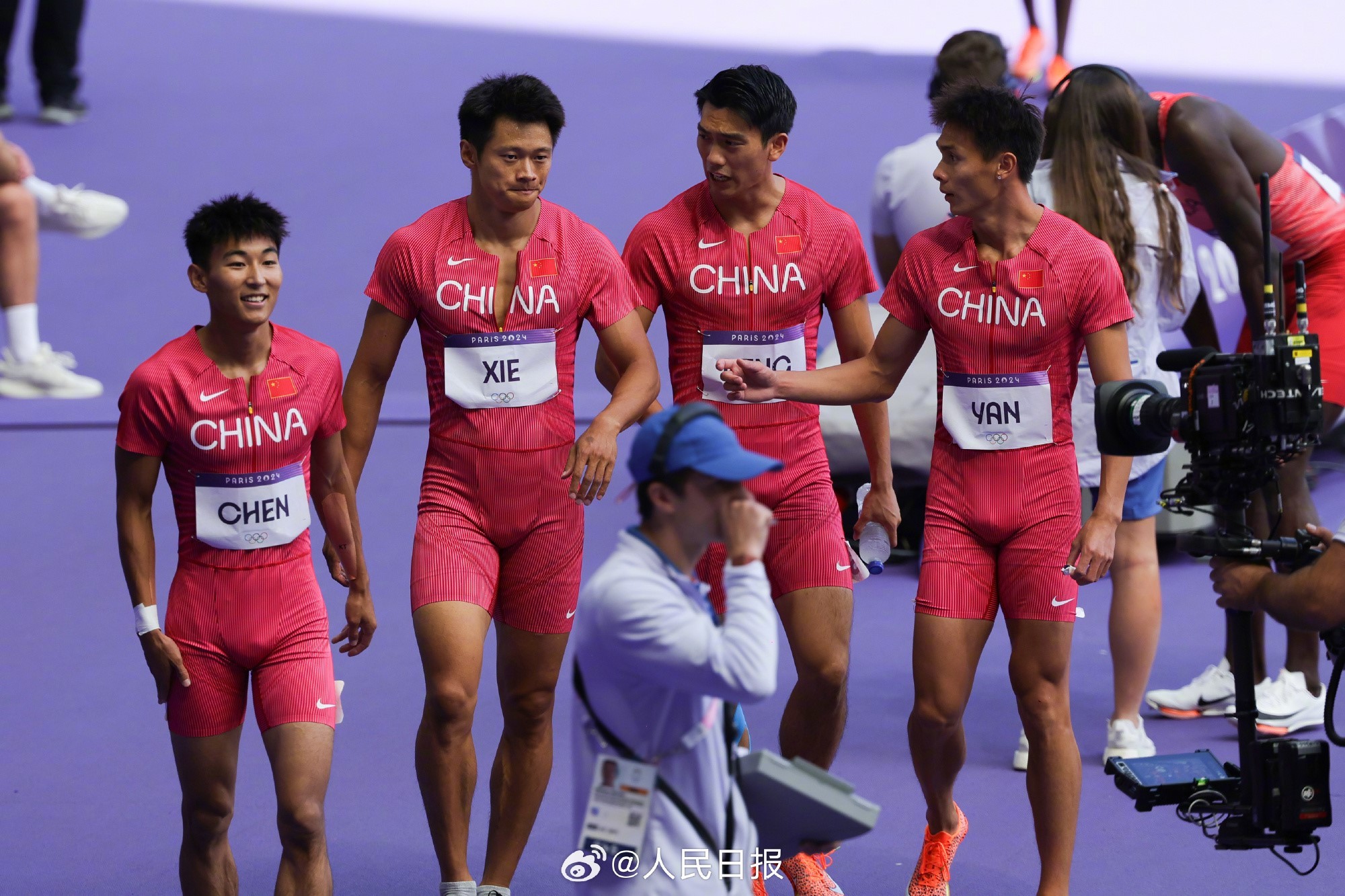 此前,在巴黎奥运会田径男子4×100米接力第一轮比赛中,中国选手邓智舰、谢震业 、严海滨 、陈佳鹏跑出38秒24,以小组第一的名次晋级决赛。期待他们在决赛中的精彩表现!