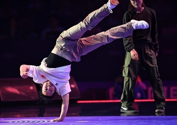 霹雳舞运动员要在比赛中完成自己的动作组合,他们需要跟随DJ播放曲目的节奏,来进行即兴创作,以赢得评委的投票。