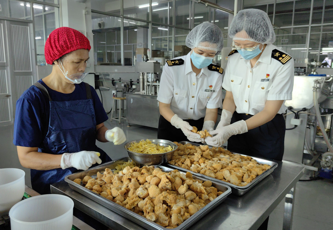 东莞海关坚持“一企一策”分类管理,主动讲解监管政策要求,优化企业原料管理,积极畅通属地查检和口岸通关绿色通道,做到随报随查、合格即放,支持广式美食安全高效出口。