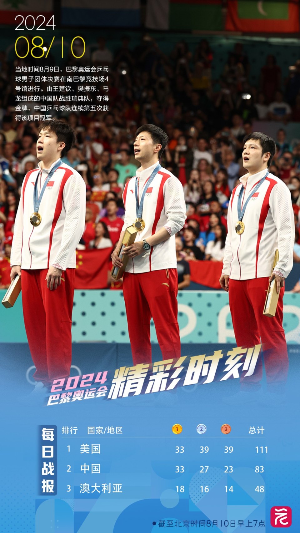 奥运时刻 | 国乒男团奥运5连冠 ;跳水、乒乓球将收官