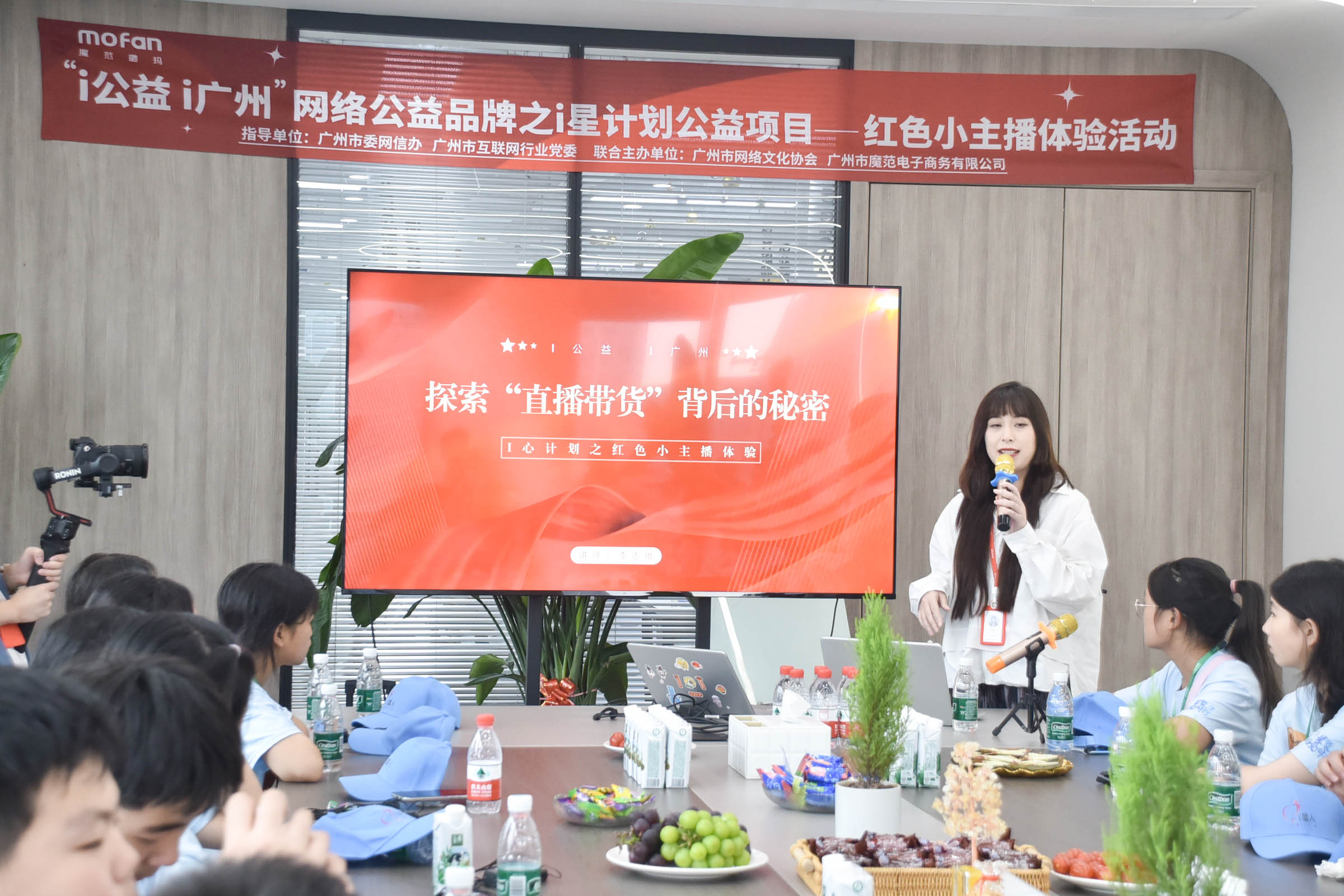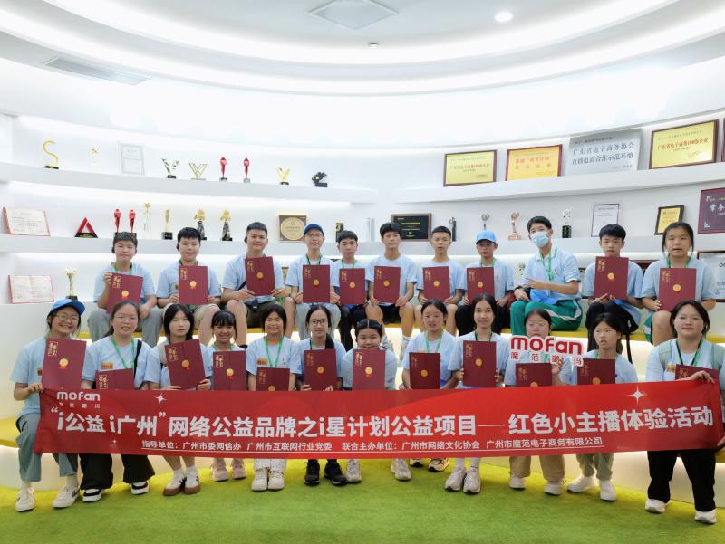 8月6日,由广州市委网信办、广州市互联网行业党委指导,广州市网络文化协会联合企业主办的“红色小主播”体验活动在魔范璐玛直播中心举办。本次活动是“i公益i广州”网络公益品牌之i星计划系列公益活动之一,围绕网络安全知识宣讲、新业态体验、模拟直播实践等内容开展,邀请来自贵州省毕节市大方天河实验学校、广州市第一一三中学的近30名师生携手参与。