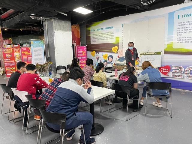 从2017年开始,心友会连续多年获得广州市社会组织公益创投活动的资助,加之三棵柚公益基金会等社会支持,得以持续开展包括系列社会融合支持行动。可以说,公益创投也见证和参与了倪卓君的一路成长。图为心智障碍者在商场接受基于实际工作岗位制定的理论培训。