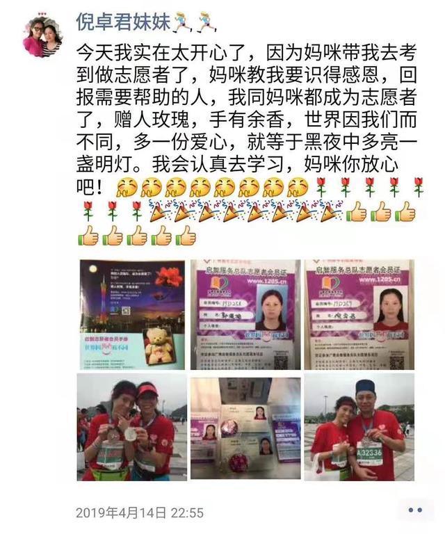 不少志愿者记得,倪卓君是在2018年加入跑团的。那时,倪卓君母亲觉得女儿也应该通过跑步探索“外边的世界”。