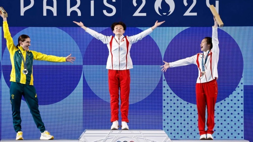 9日的巴黎奥运会跳水女子三米板颁奖仪式上演了一出“老友记”。当金牌得主、中国选手陈艺文跃上最高领奖台时,亚军澳大利亚选手基尼和季军中国选手昌雅妮在两边摆出了欢迎“巨星”登场的动作,场面十分有爱。