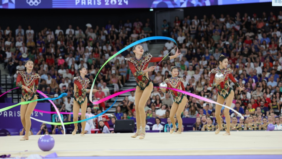 当地时间8月10日,在拉夏贝尔体育馆进行巴黎奥运会艺术体操集体全能决赛中,中国队夺得冠军。这是中国队首次夺得该项目的奥运会金牌。