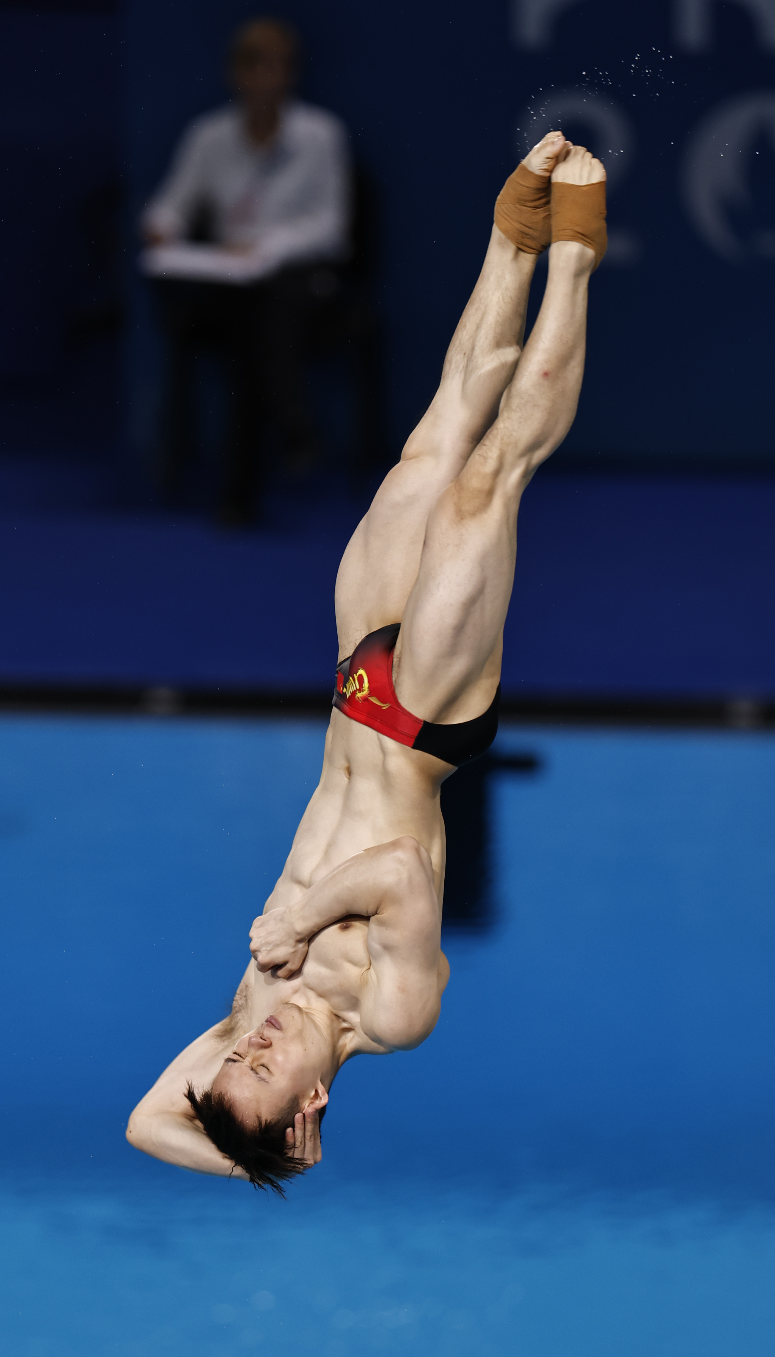 8月8日,中国选手谢思埸在比赛中。当日,在巴黎奥运会跳水项目男子3米板决赛中,中国选手谢思埸获得金牌。新华社发