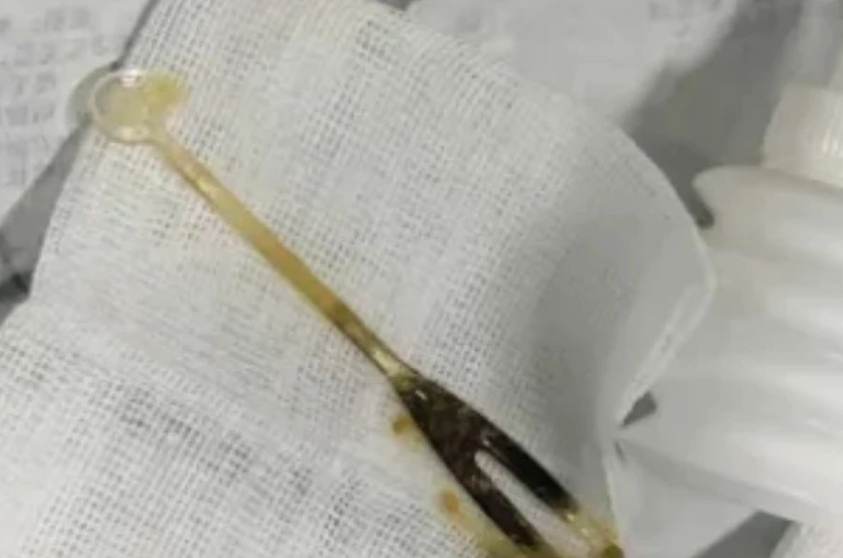 医生在肠镜下取出的叉子长约8厘米
