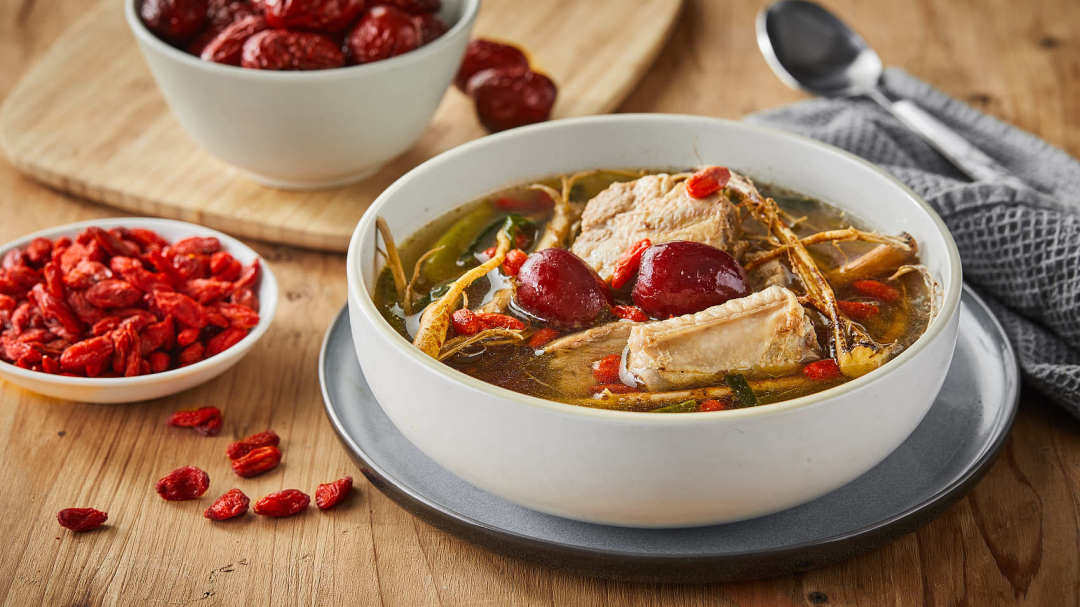 做法:先将五指毛桃水浸30分钟,蜜枣洗净备用;排骨洗净,切块焯水;所有材料放入汤锅,加水10碗,大火烧开后小火煮2小时,煮好后加入食盐调味即可。