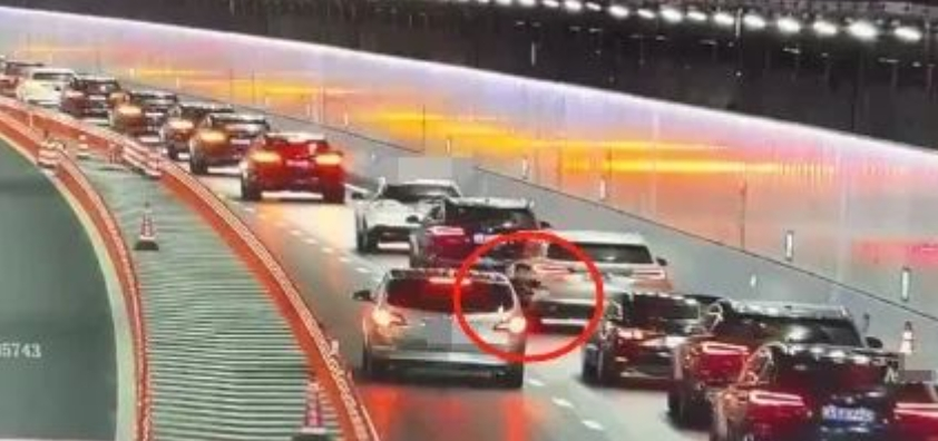 近日,深圳交警通过视频巡逻发现一辆小车停在深中隧道K59路段,同时有乘客通过车窗探出头来,疑似在拍摄,此行为非常危险。