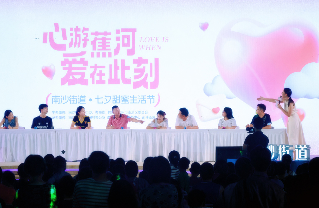 8月10日七夕当晚,位于广州市南沙区的蕉河·四季公园剧场化身星光璀璨的约会宝地。随风轻摇的爱心气球、诱人的水果甜点……一场浪漫的露天PARTY在盛夏晚风中火热开始。为了满足青年们的多样社交需求,由南沙街道党工委、办事处联合团南沙区委共同主办的“心游蕉河·爱在此刻”七夕甜蜜生活节盛大开启,本次活动特别设置了相亲会、搭子角、爱恋角等区域,让我们一同回顾活动的精彩瞬间。