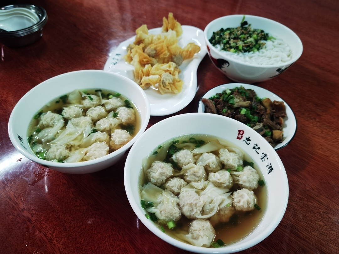 在正果老街上品尝增城非遗美食云吞濑粉。