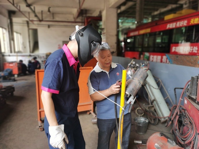“根据竞赛日程,从8月1日开始,我们精心组织各车间推荐的7位焊工进行内部培训选拔,并邀请到本企业2位退休老师傅将多年经验倾囊相授。”广州一汽巴士维修分公司相关负责人介绍称,通过对标大赛技术要求开展精准培训,从中优选出3位选手参加理论知识考试,其中冯健铭、罗其信脱颖而出,在高手云集的激烈竞争中,晋级到前60名的焊接实际操作项目选拔赛环节。