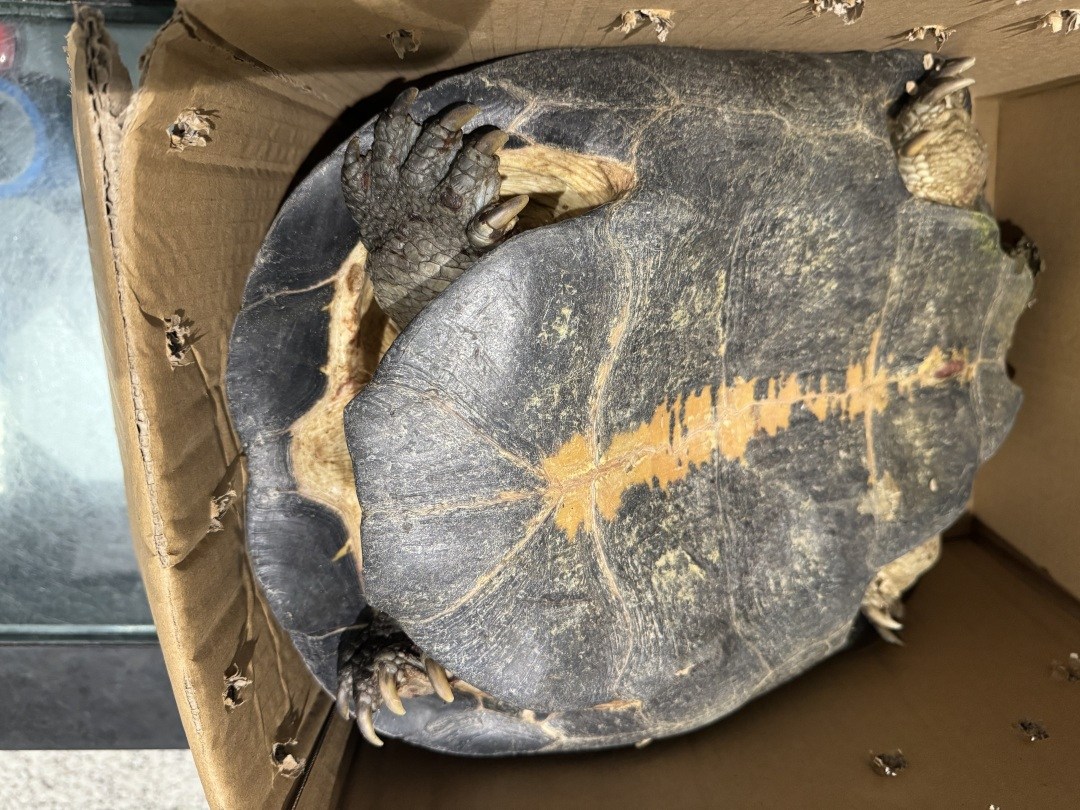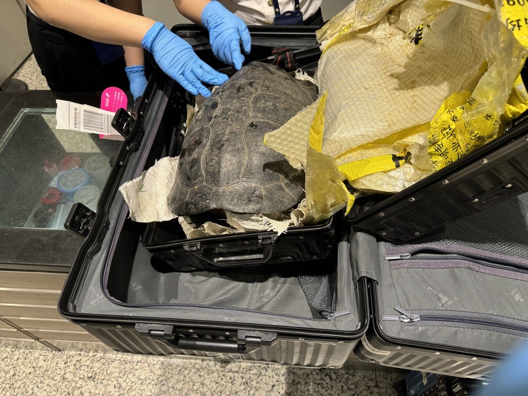 广州海关查获旅客违规携带进境的濒危动物庙龟1只。