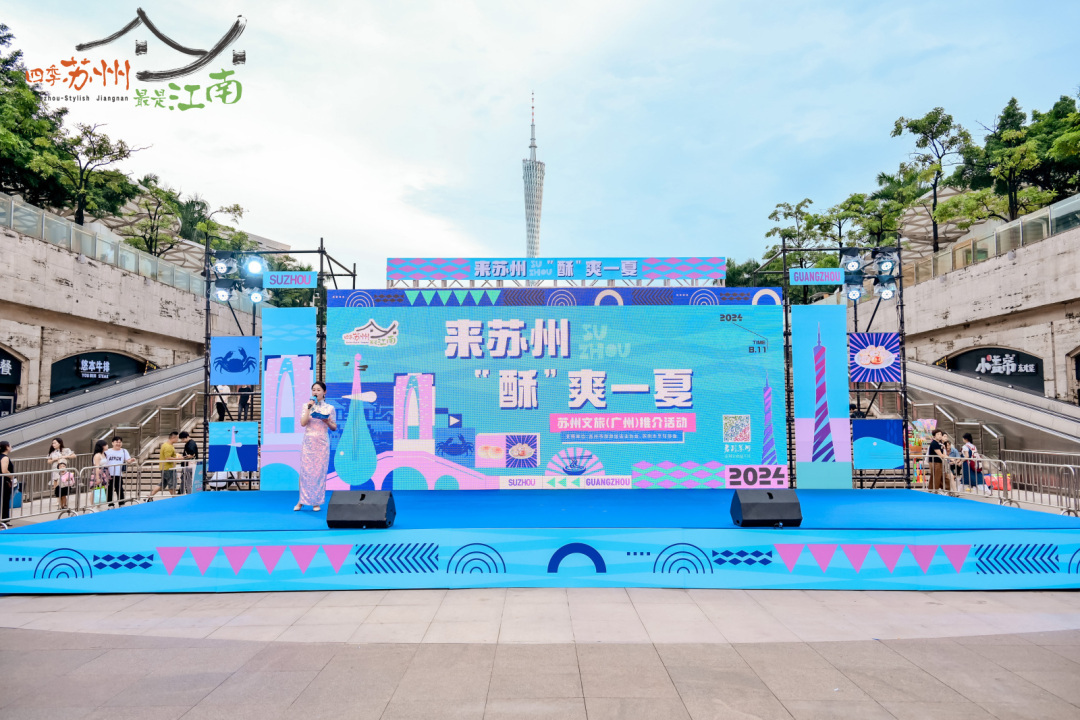苏州评弹演出、文旅产品推介、美食文化展示……近日,在“来苏州 ‘酥’爽一夏”苏州文旅推介活动上,苏州文旅风采于广州花城汇悉数展现,风味夜市更是借文旅推介活动的平台助推苏州文旅产品“走出去”。在广州,市民游客解锁苏州当季玩法,感受来自江南水乡的风情。
